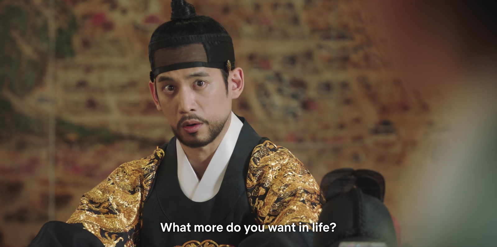 Also, to be completely honest, their chemistry also just sizzles and pops more. Look at this sweet exchange in episode 7. And look at Prince Dowon stewing in jealousy in the blurry background, hehe.